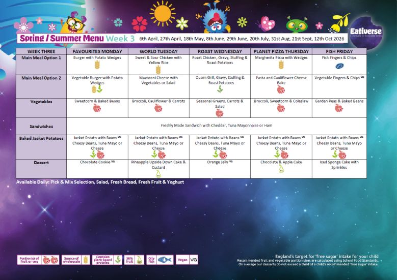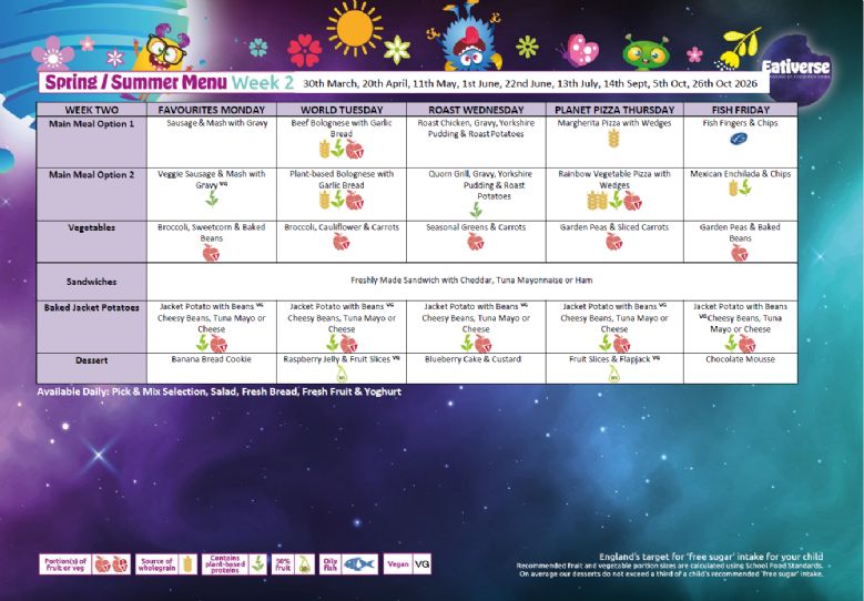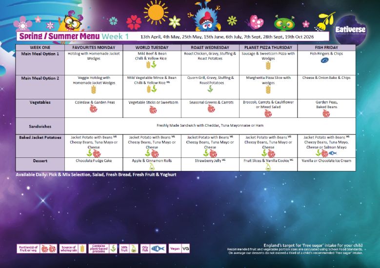 Please note: you must order school meals by midnight on Thursday for the following week to enable the kitchen to place their food order.